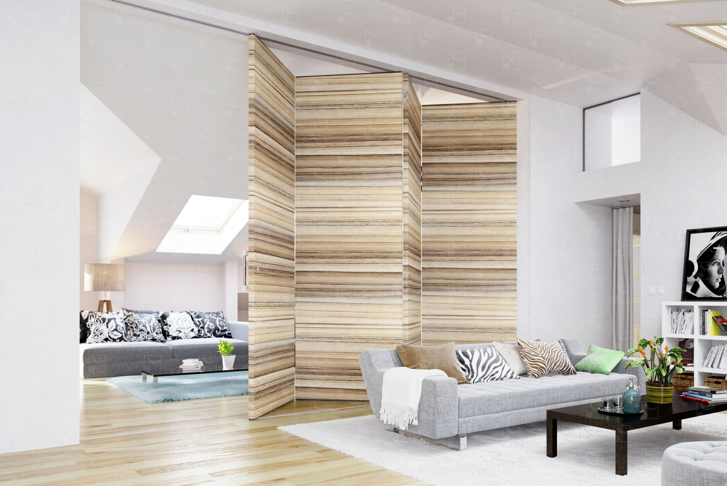 Système pliant/coulissant droit pour panneaux en bois de 30 à 50 mm d’épaisseur. S’utilise en intérieur : restaurants, bars, villas, hôtels ...