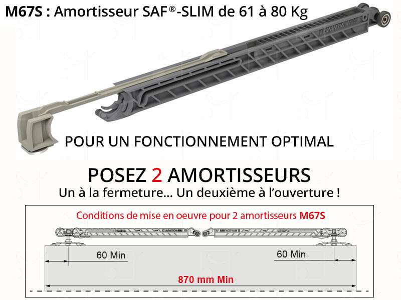 The damper automatically accompanies the door to its open and/or closed position. Suitable for doors weighing 61-80 kg. It is recommended that 2 dampers be used for doors with a width of 870 mm or more.