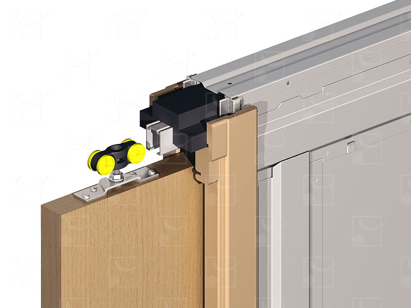 Kit caisson pour porte bois simple entre cloisons, porte 930 X 2040. Capacité/porte : 80 kg max. Epaisseur : 40 mm max. Voir notice commerciale.