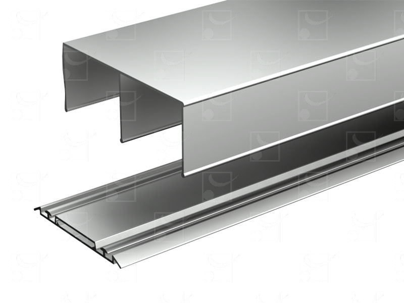 Set of aluminium tracks, anodized aluminium – L = 6 m, including: 1 upper guiding track – 1 lower guiding track – 1 cover to hide fixing screws (to be clipped on the lower track)