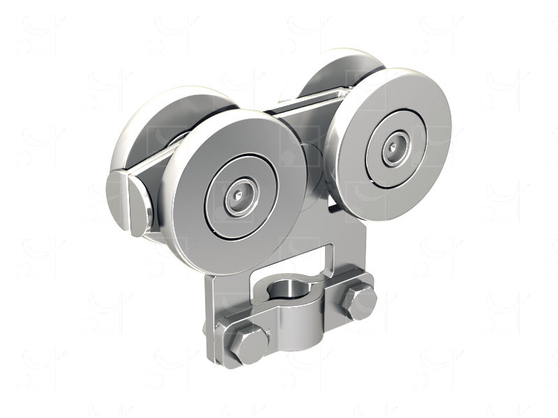 Car-directional trolley, entirely out of steel and assembled on balls bearings. Capacity/trolley 25 kg. Track 3530.