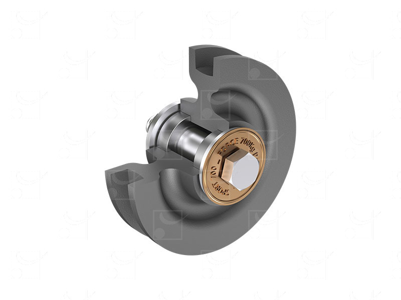 Galet en fonte Ø 108 mm monté sur roulement à billes.