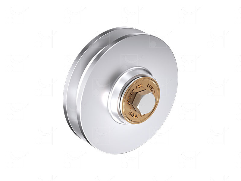 Galet en acier Ø108 mm monté sur cage à rouleaux. Équipe les montures 0400. Capacité / galet : 200 kg.