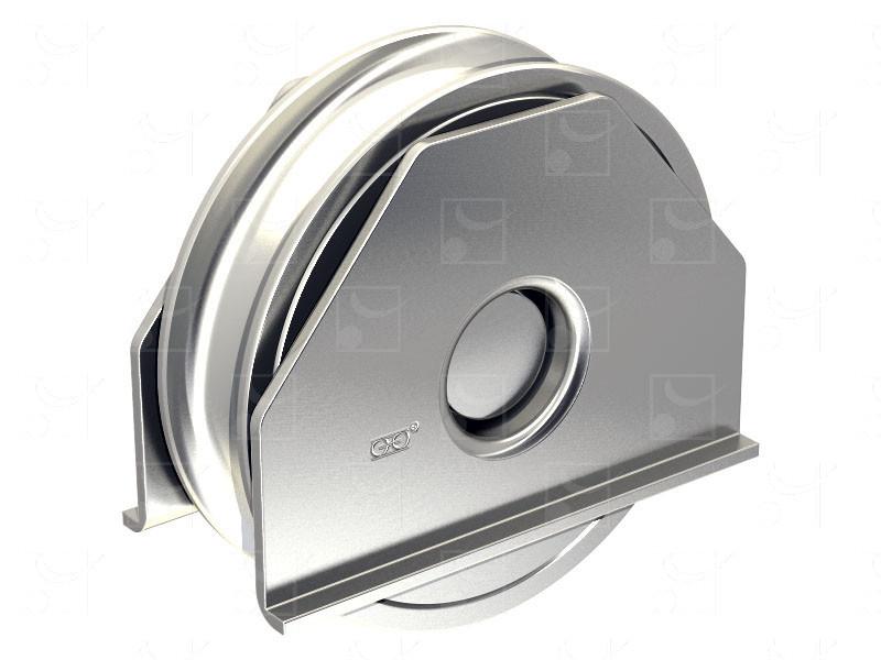 Monture à support intérieur acier à souder – Galet acier zingué Ø 80 sur roulement à billes étanche – Gorge ronde Ø 21 – Force/galet : 200 kg.